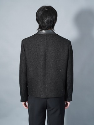 【ALUDE SELECT】collar pu leather lame tweed jacket